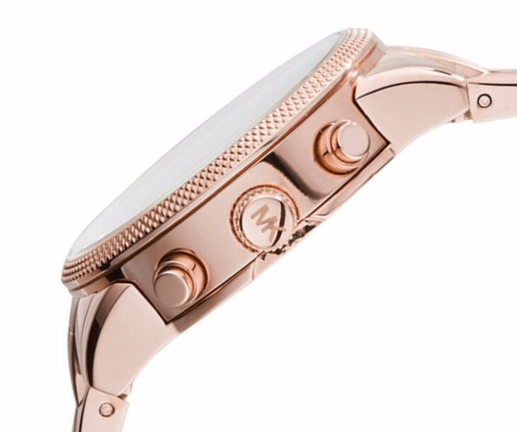 Корпуса и верижката са изработени от благородна стомана в цвят розово злато. Дисплея е златист. Индикации: Час, Минути, Секунди, Ден от седмицата, Ден от месеца, 24-часов индикатор. Водоустойчивост: 10 бара (подходящ за къпане и плуване на малки дълбочини);