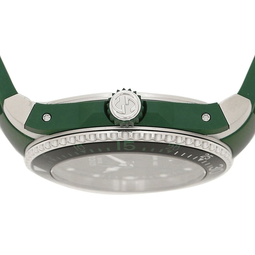 20 мм зелена гумена каишка от две части с марка Gucci. Закопчалка за бутване от неръждаема стомана.