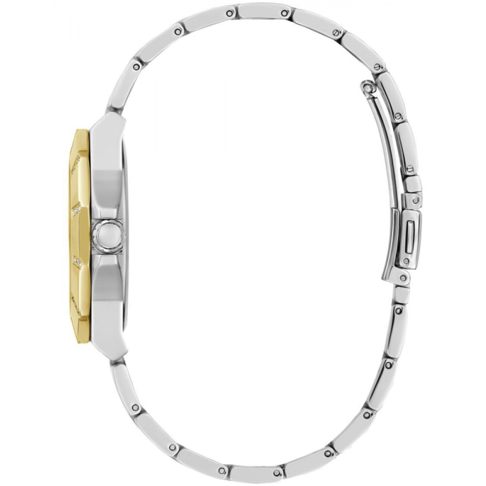 Корпуса и верижката са изработени от неръждаема стомана с устойчиво на износване златно и сребърно покритие. Циферблата е аналогов в бял цвят. Диаметър на корпуса 36 мм.