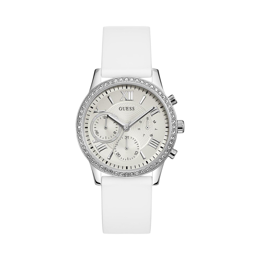 Корпусът е изработен от неръждаема стомана с устойчиво на износване сребристо покритие и кристали. Циферблата е тип хронограф в бял цвят със сребристи акценти. Каишката е изработена от полимерен материал (силикон) в бял цвят. Диаметър на корпуса е 40 мм.