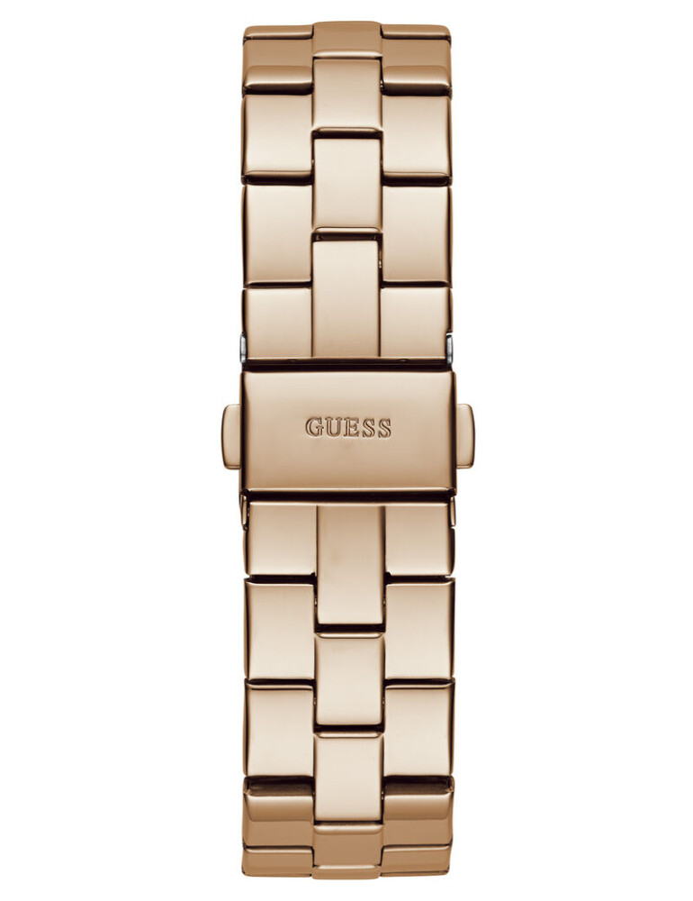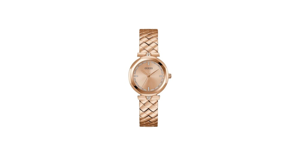 Корпуса и верижката са изработени от неръждаема стомана с устойчиво на износване розово златисто покритие. Циферблата е аналогов в розово златист цвят с декорация от инкрустирани кристали. Диаметър на корпуса 34 мм.