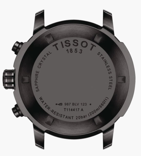 Корпусът и верижката са изработени от неръждаема стомана с устойчиво на износване черно покритие. Циферблата е тип хроногрф в черен цвят със сребристи и луминисцентни индекси.