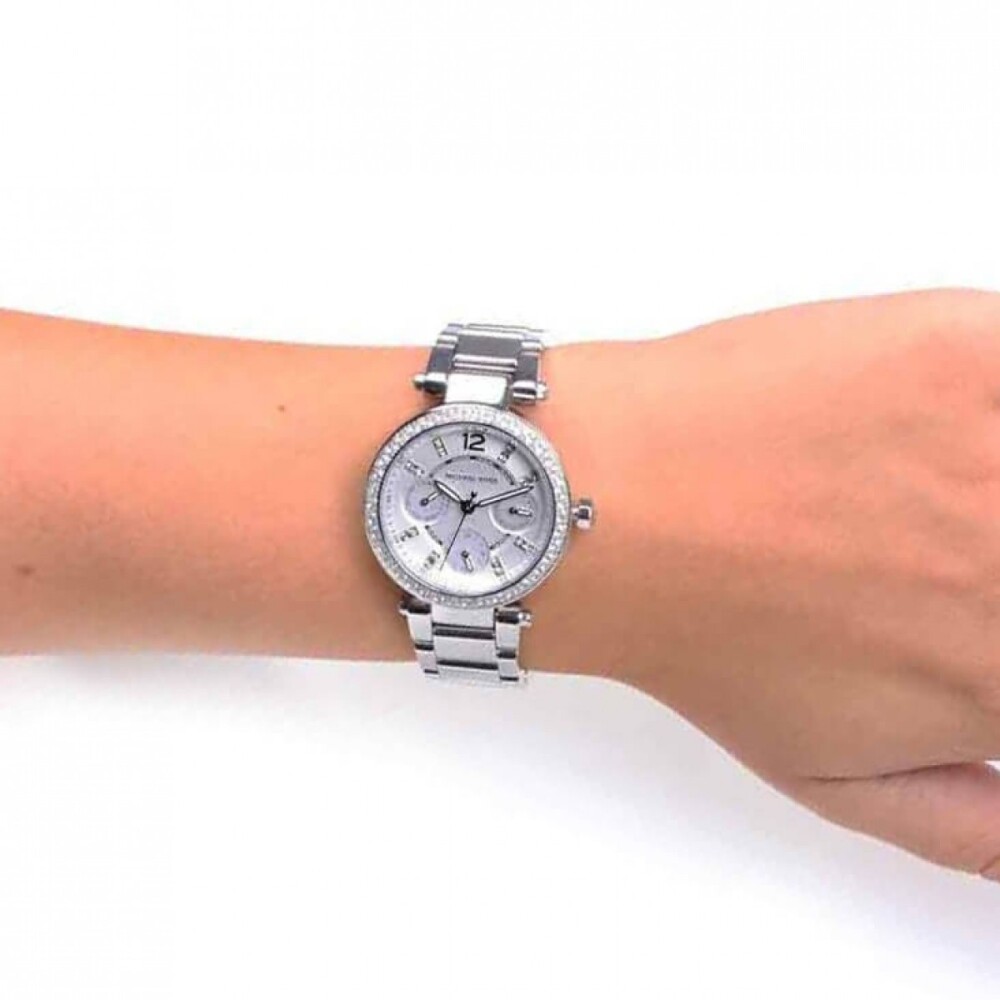 Корпуса е изработен от благородна стомана в сребрист цвят с инкрустирани кристали по безела. Верижката е изработена от благородна стомана в сребрист цвят. Циферблата е Бял със сребристи стрелки и кристални индекси.